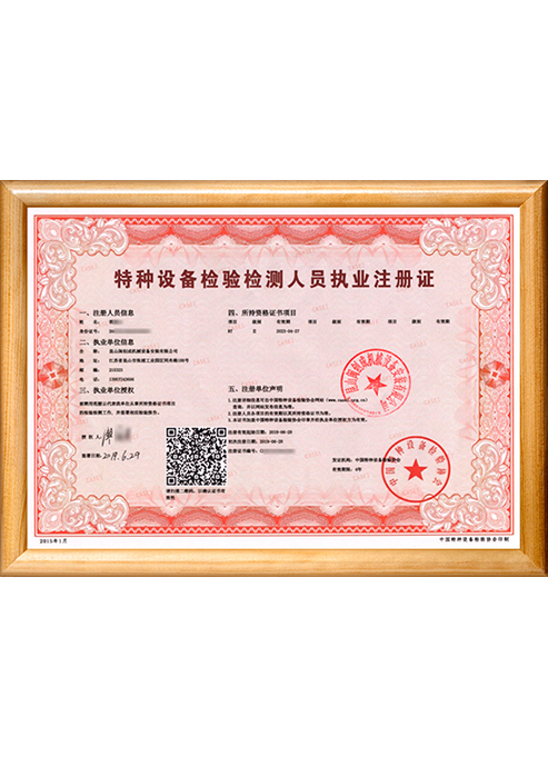 特种设备检测人员注册证